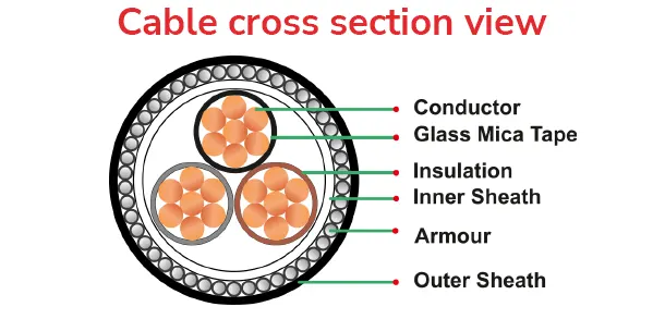 Armour: Galvanised Steel Round Wire Armoured. (also available with Galvanised Steel Flat Strip Armour, dimensions and weights changes accordingly)