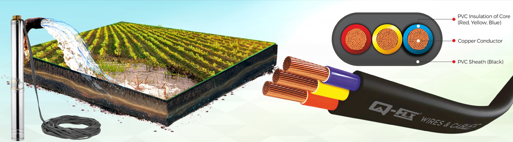 Suitable for giving the power connection in submersible pump motors used mainly for Agricultural practices where the cable needs to be tough and resistant to water.
